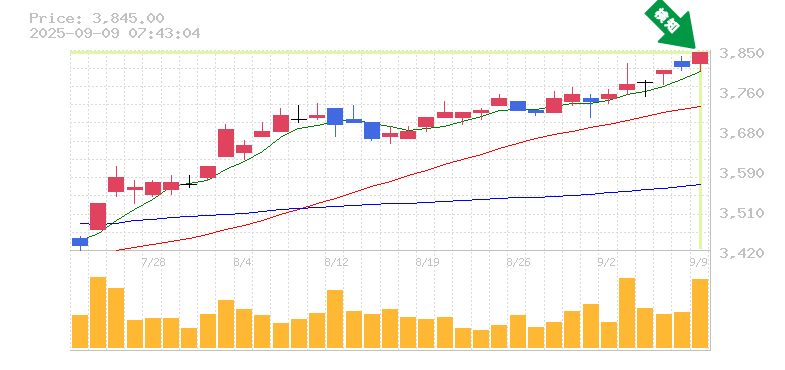 終 値:3845円