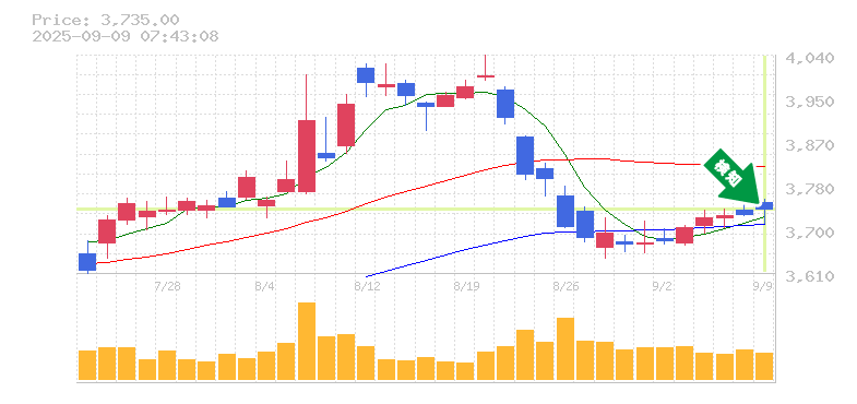 終 値:3735円