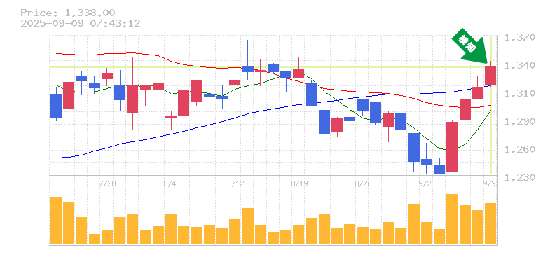終 値:1338円