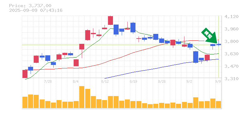 終 値:3737円
