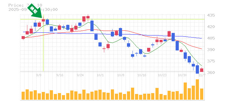 終 値:428.4円
