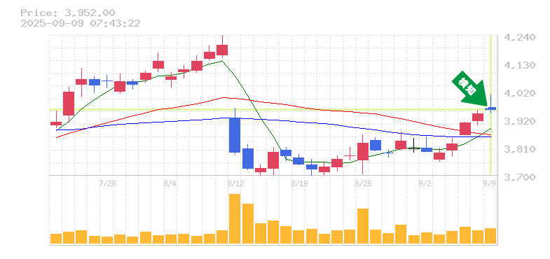 終 値:3952円