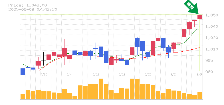 終 値:1049円