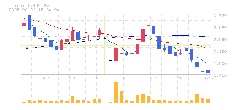 株価:2,368円(-17.43%)前日比:-500