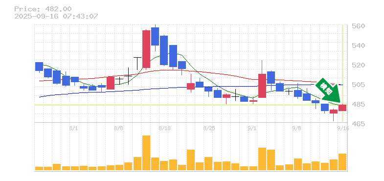 終 値:482円