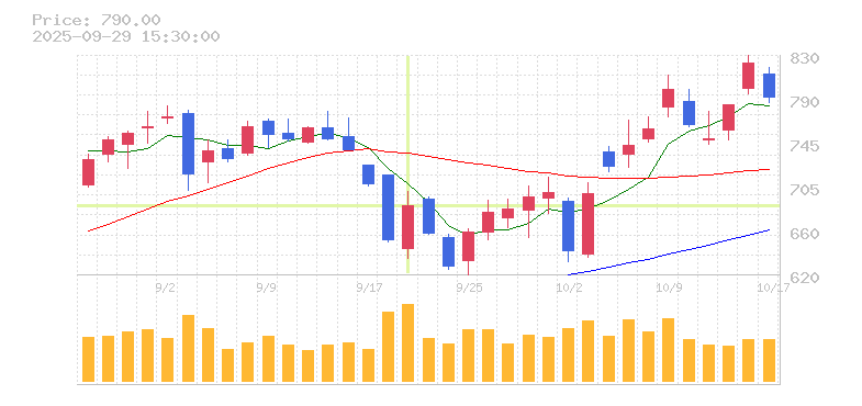 | 株価:6,798円(-1.49%)前日比:-103 | ||||