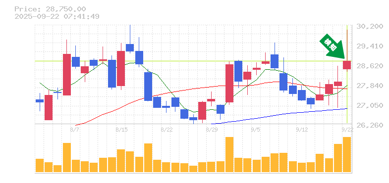 終 値:28750円