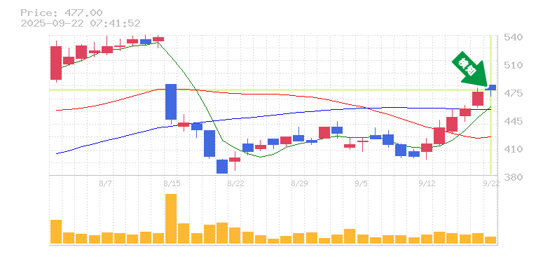 終 値:477円