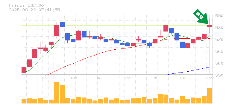 終 値:583円