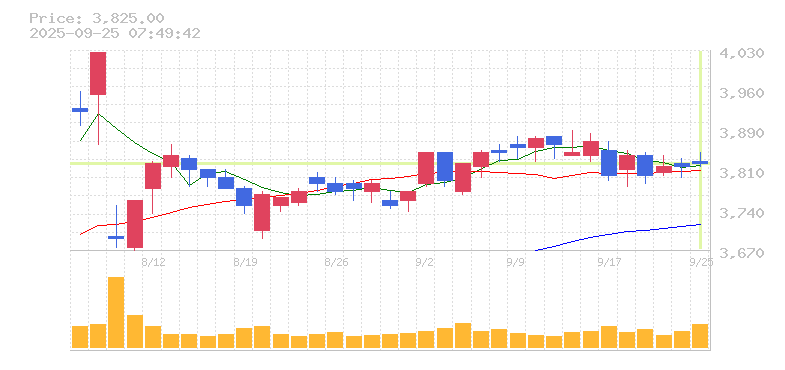 終値:3825円