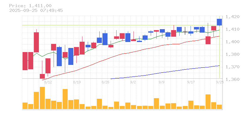 終値:1411円
