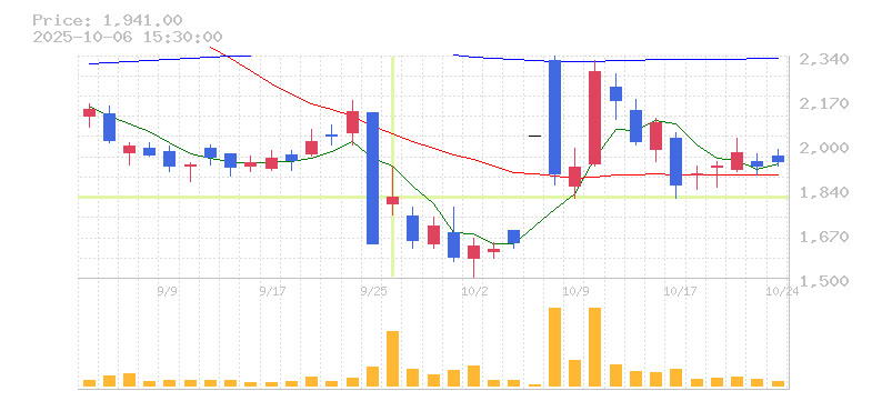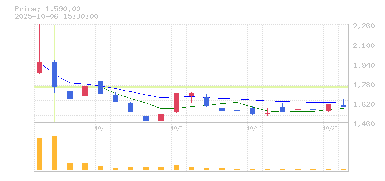 株価:1,750円(-10.26%)前日比:-200