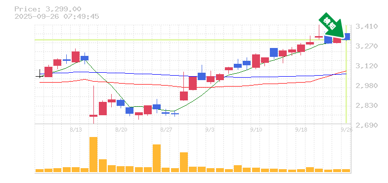 終 値:3299円