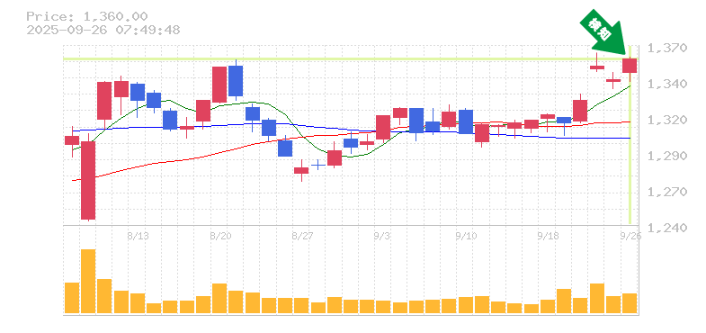 終 値:1360円