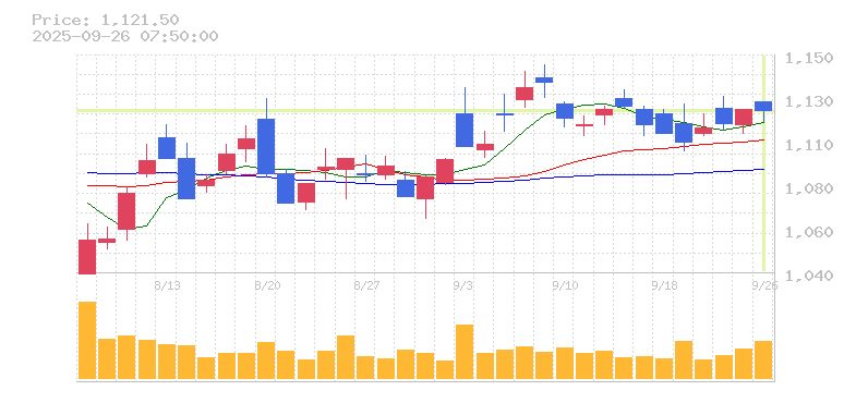 終値:1121.5円