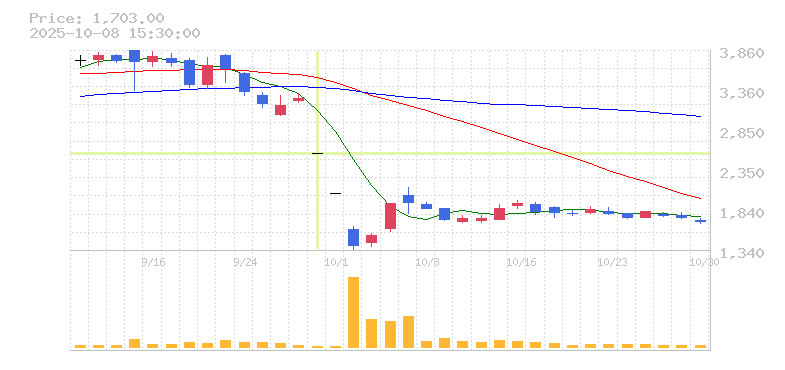 株価:2,550円(-21.54%)前日比:-700