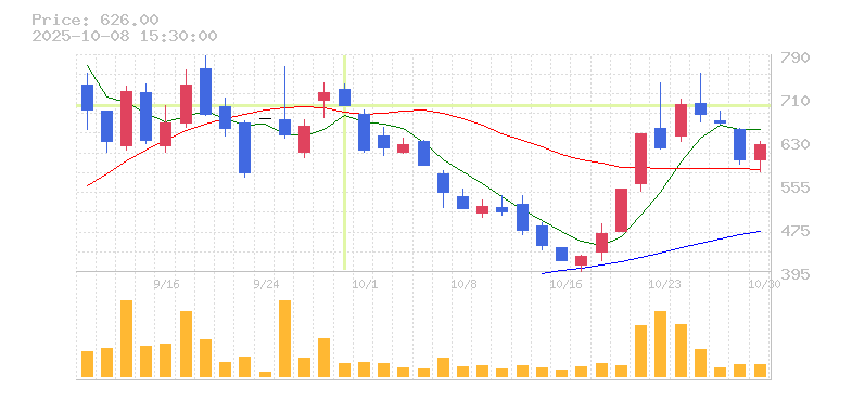 株価:697円(-3.19%)前日比:-23