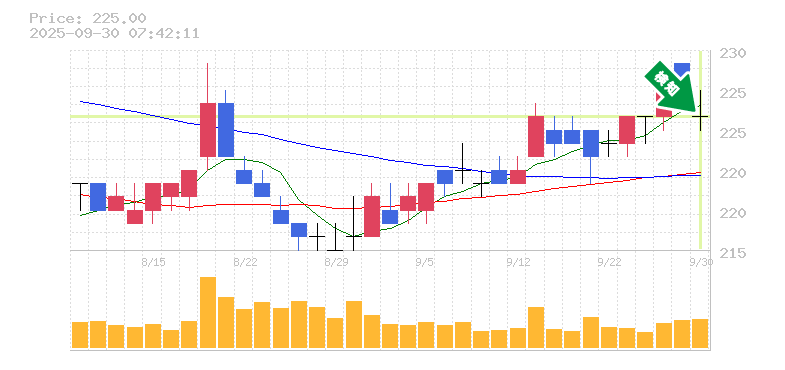 終 値:225円