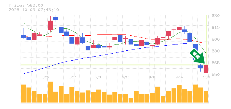 終 値:562円
