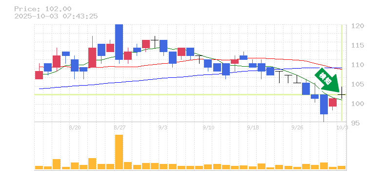 終 値:102円