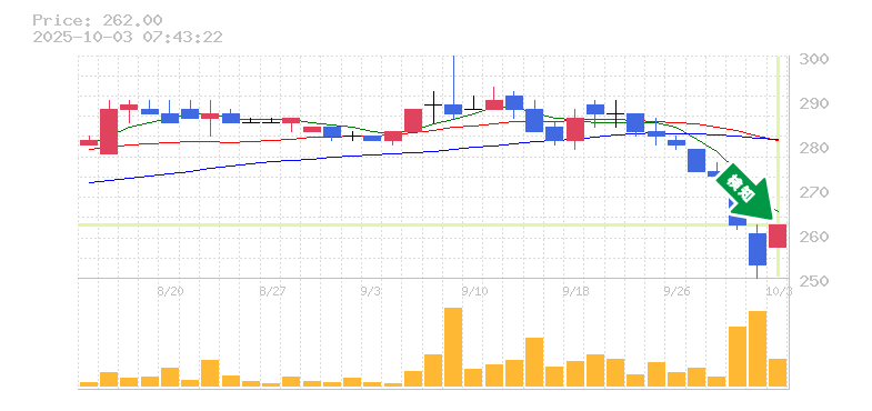 終 値:262円