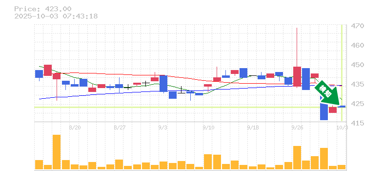 終 値:423円