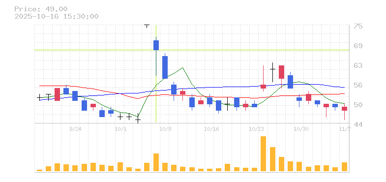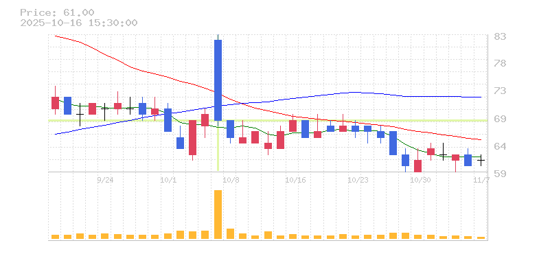 | 株価:67円(-10.67%)前日比:-8 | ||||