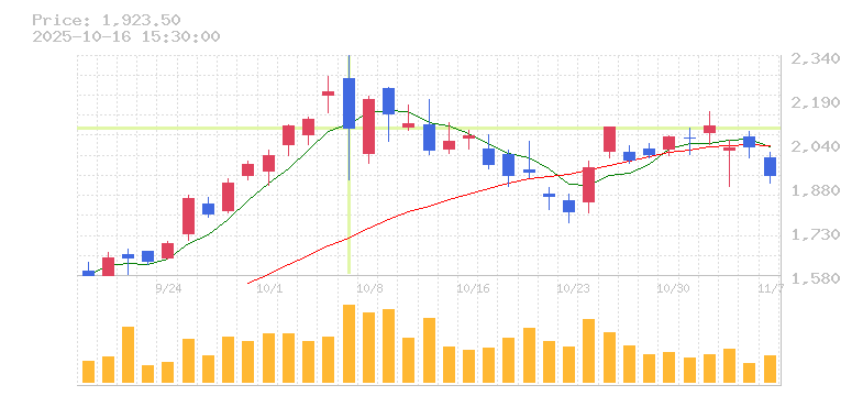 | 株価:2,087円(-5.67%)前日比:-125.5 | ||||
