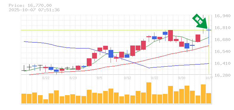終 値:16770円