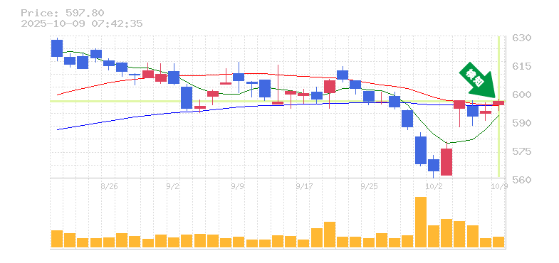 終 値:597.8円