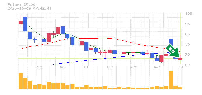 終 値:65円