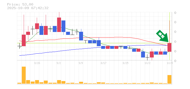 終 値:53円
