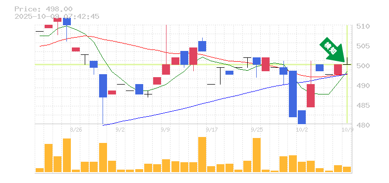 終 値:498円
