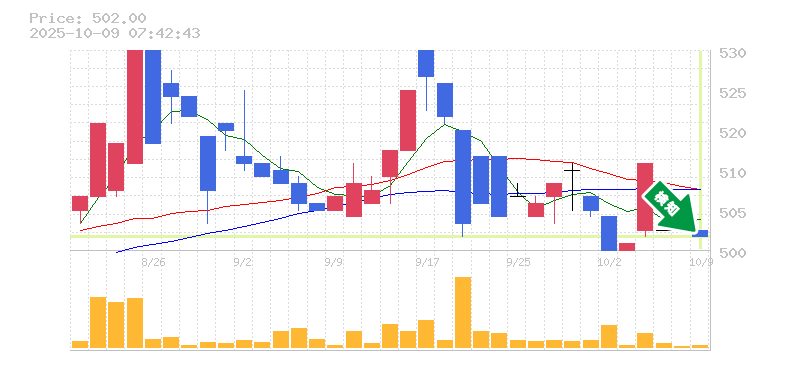 終 値:502円