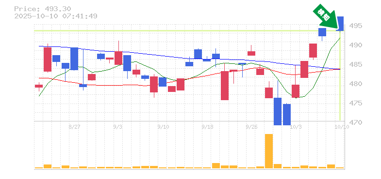 終 値:493.3円