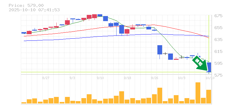 終 値:579円