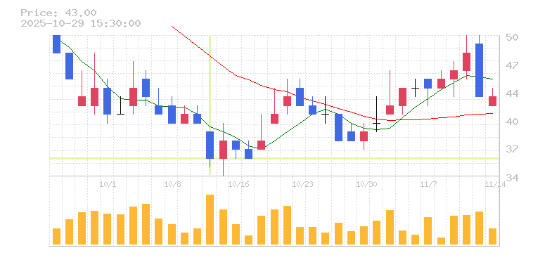 | 株価:36円(-10%)前日比:-4 | ||||