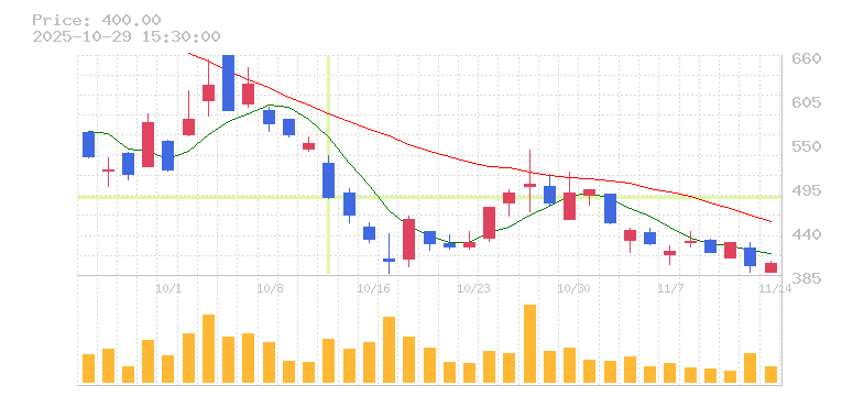 | 株価:482円(-12.36%)前日比:-68 | ||||