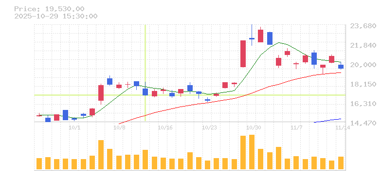 | 株価:19,800円(-2.1%)前日比:-425 | ||||