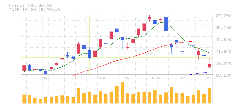 | 株価:20,880円(-6.14%)前日比:-1365 | ||||
