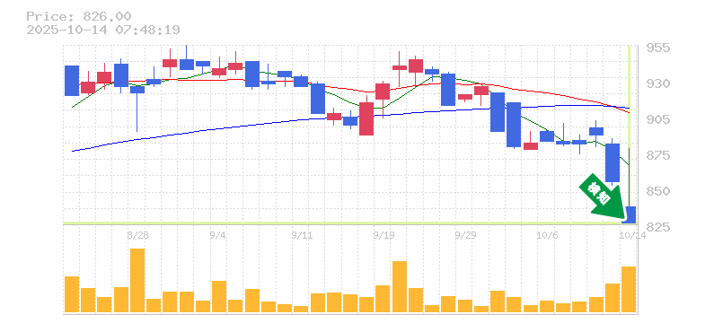 終 値:826円