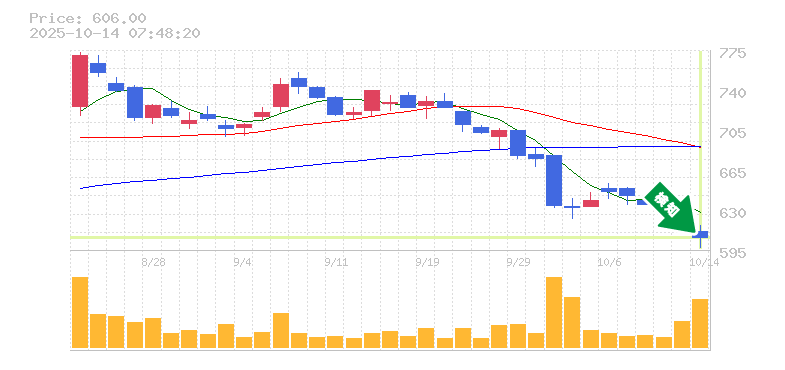 終 値:606円