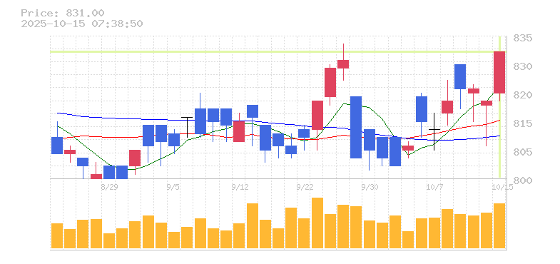 終値:831円