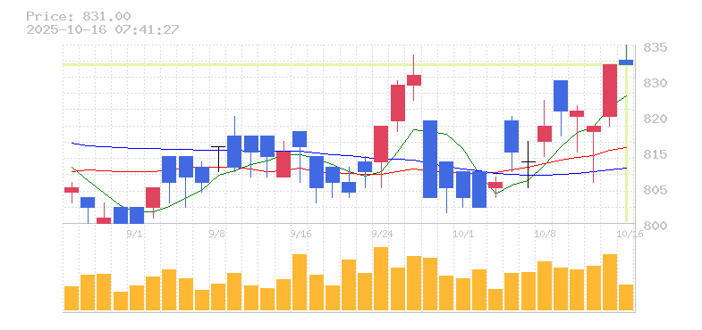 終値:831円