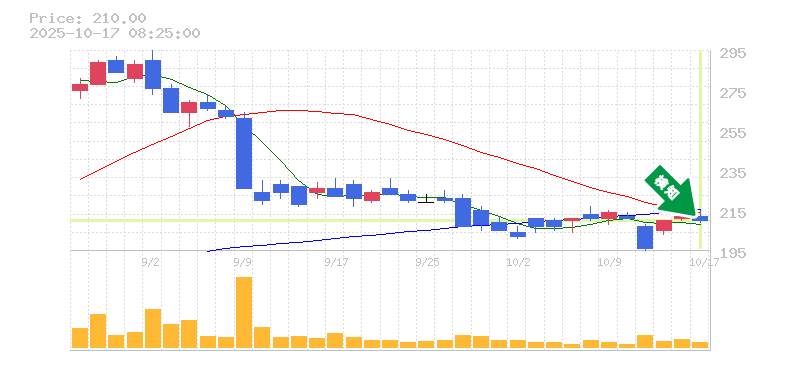 終 値:210円