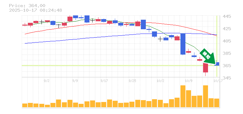 終 値:364円