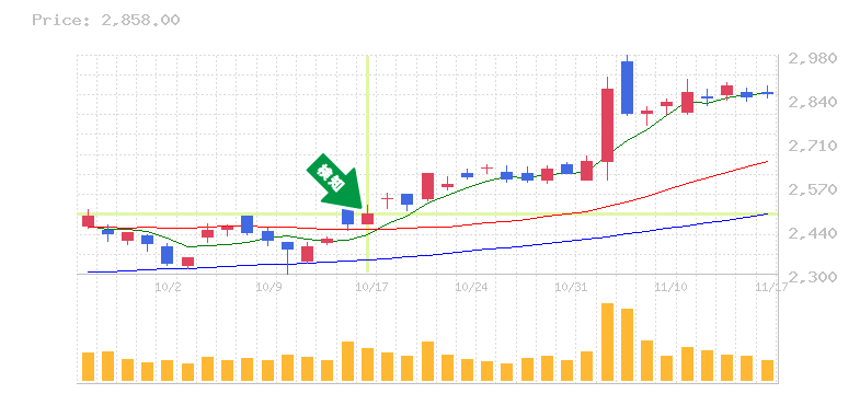 上離れ? 4連騰以上継続しながら75日線突破している銘柄