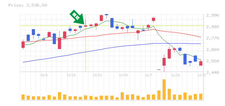 終 値:2882.5円