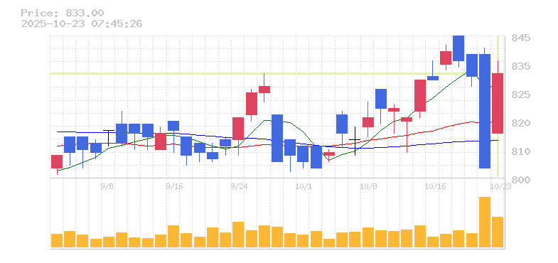 終値:833円
