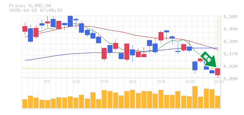 終 値:5992円
